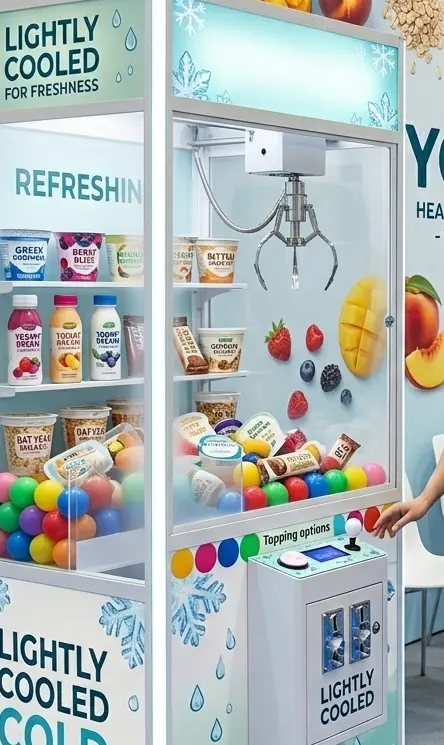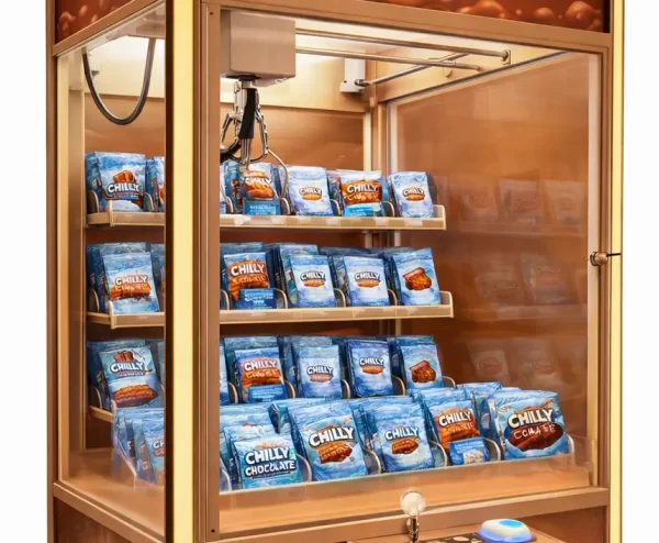 claw machine with a colder interior for chocolates , drinks or snack