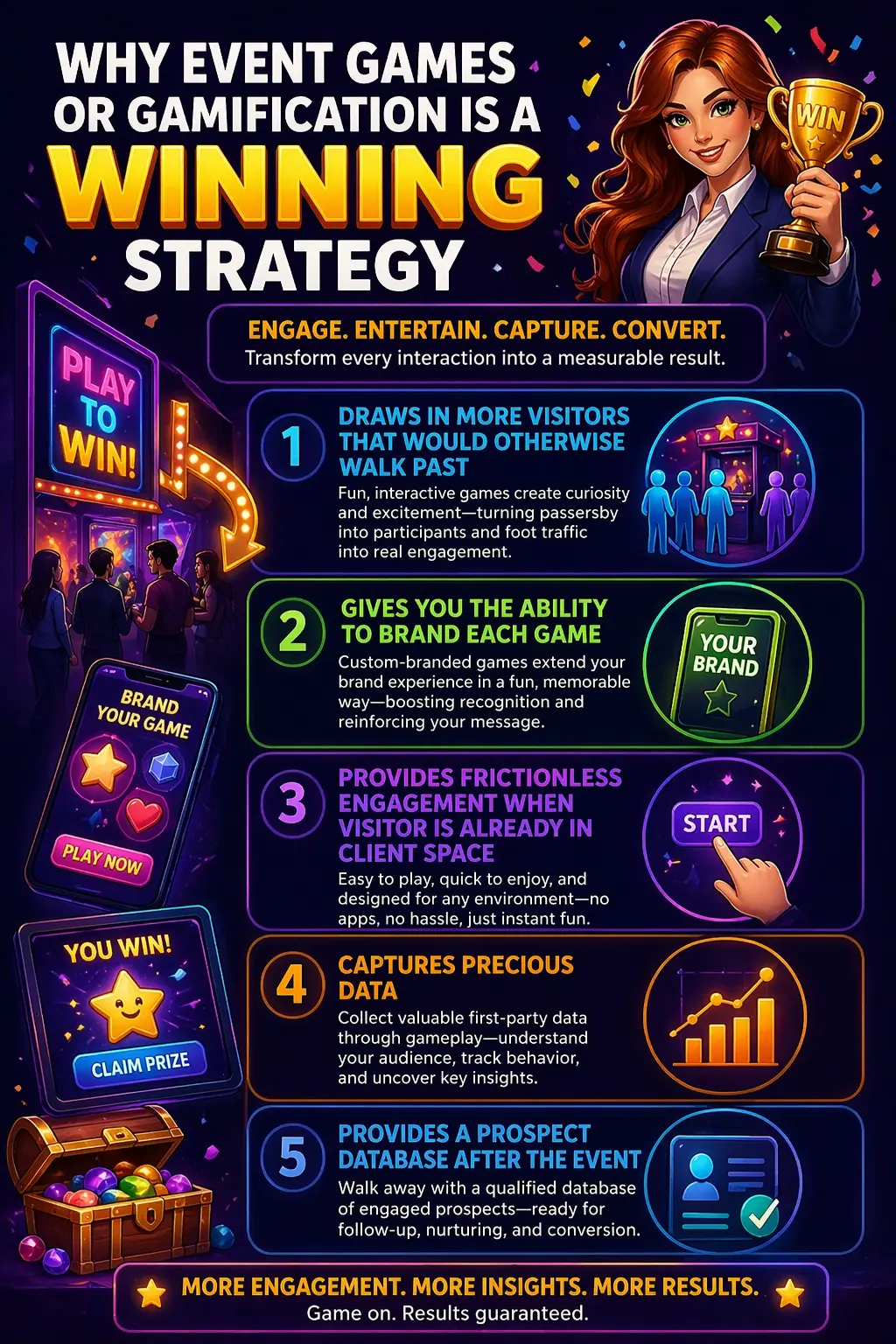 Interactive content helps convert passive foot traffic into active booth visitors.